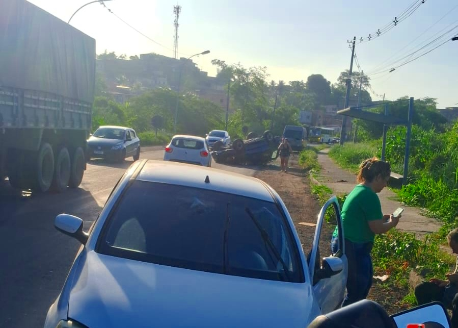 Um grave acidente foi registrado na tarde desta quinta-feira (11) na Estrada da Base Naval de Aratu, em São Tomé de Paripe, no Subúrbio de Salvador. Um veículo capotou na rodovia.