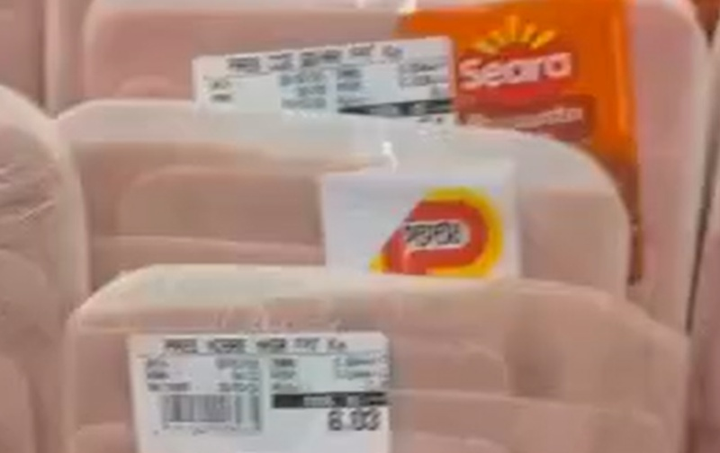 “Olha como está esverdeado o presunto e eles estão colocando para vender”, reclama o homem no vídeo.