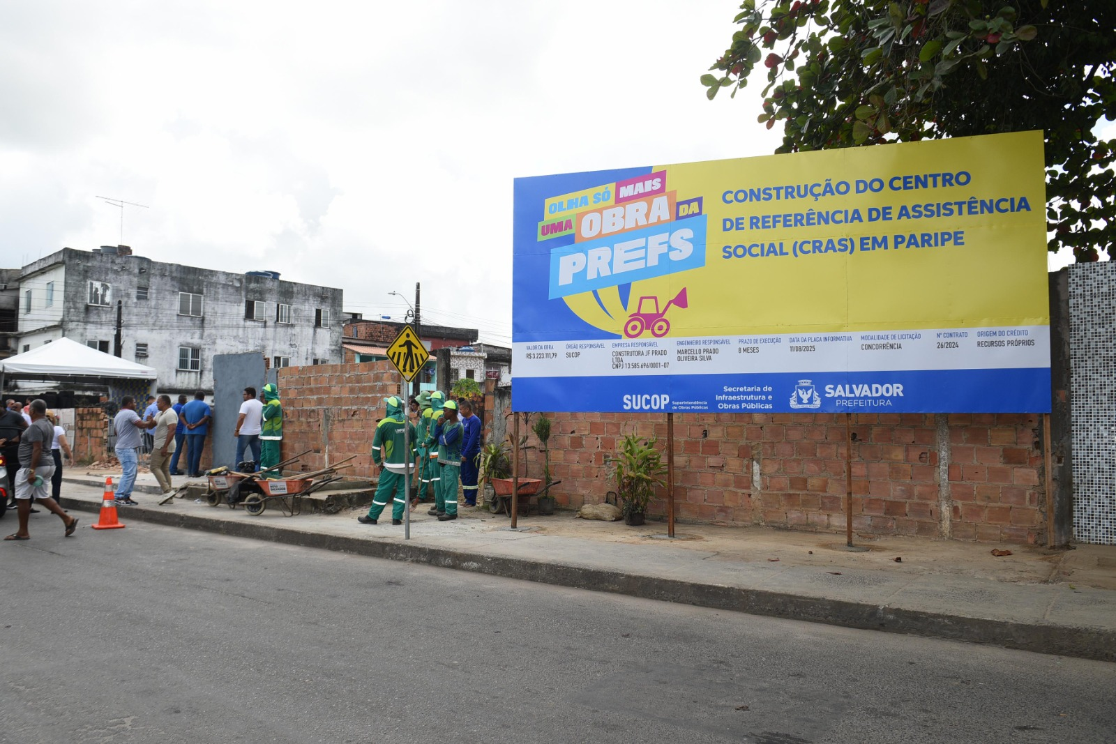 A ordem de serviço para construção de um novo Centro de Referência de Assistência Social (Cras) Modelo no bairro de Paripe, no Subúrbio, foi assinada nesta segunda-feira (11). O equipamento com investimento de R$3,2 milhões ficará na Rua Iriguaçu, na região da Cocisa. Segundo a gestão municipal, a previsão é que o Cras seja entregue em 12 meses.
