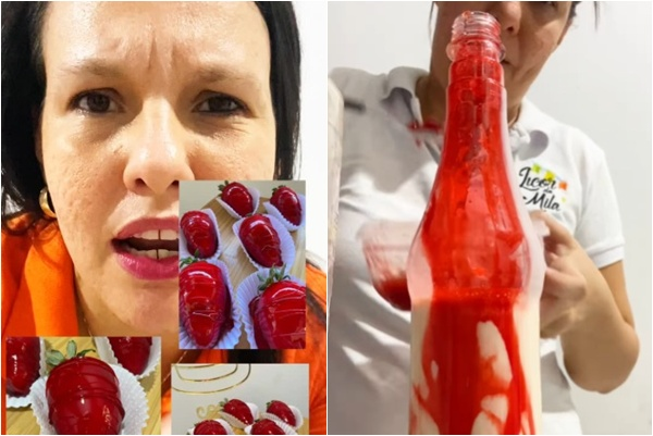 Ela revela que a iguaria leva em sua composição calda de morango, licor de ninho e geleia da fruta.