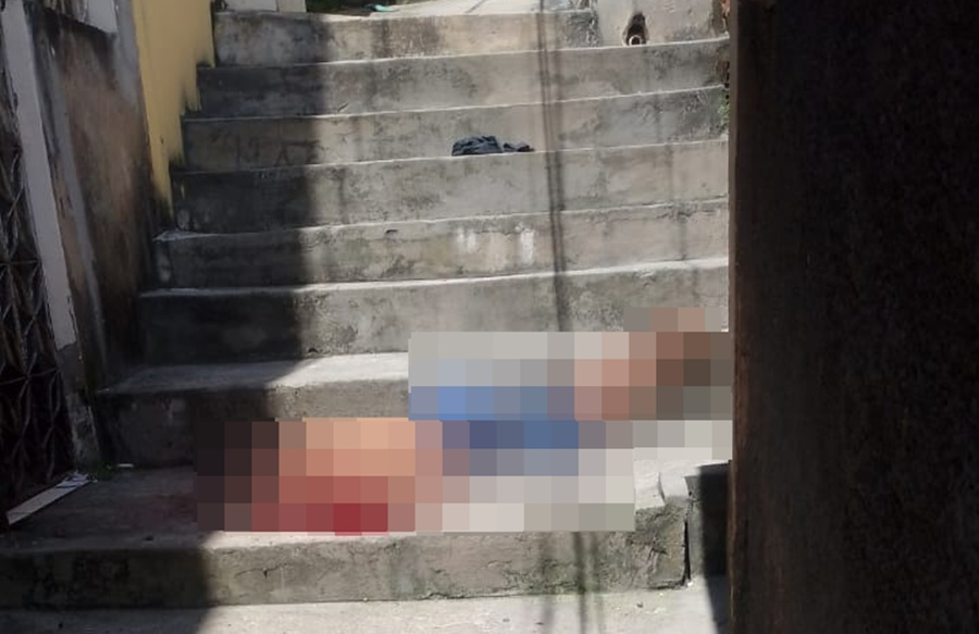 O corpo foi localizado em uma escadaria. Moradores relataram que houve um intenso tiroteio, causando correria e o homem acabou morto.