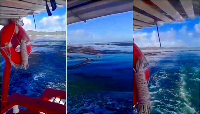 Marinheiros que fazem a travessia entre São Tomé de Paripe e Ilha de Maré flagraram e registraram em vídeos, na sexta-feira (31), uma extensa mancha escura na Baía de Todos-os-Santos.