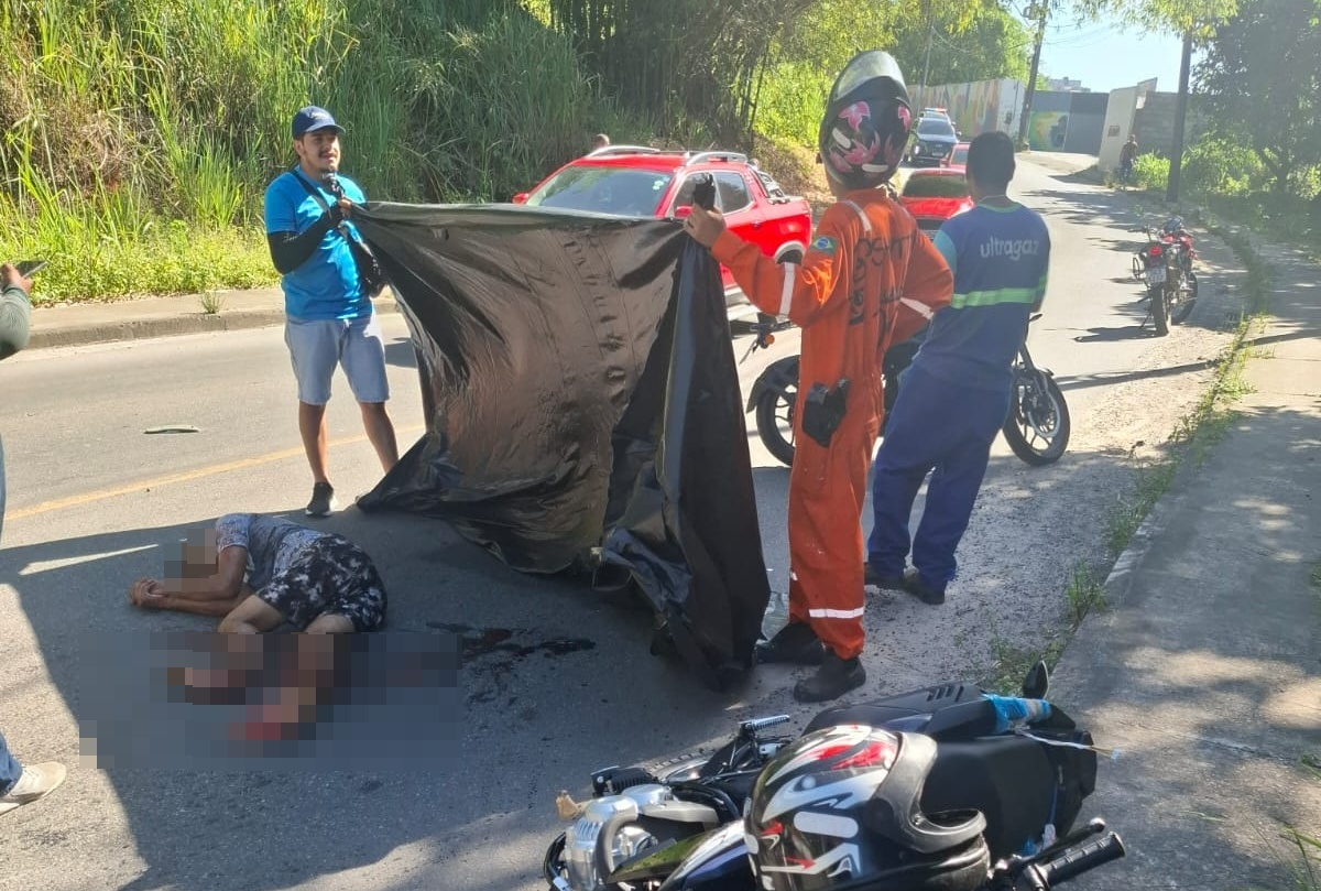 Imagens compartilhadas em grupos de WhatsApp mostram outros motociclistas fazendo sombra no local onde a vítima estava deitada, antes de ser encaminhada para o Hospital do Subúrbio.