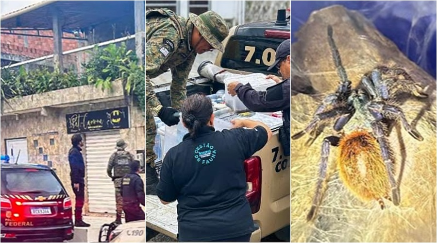 Uma operação conjunta realizada nesta segunda-feira (8) resultou na apreensão de mais de 200 tarântulas em uma casa no bairro de Paripe, no Subúrbio de Salvador. Agentes das polícias Federal e Militar, além do Inema, participaram da investida.