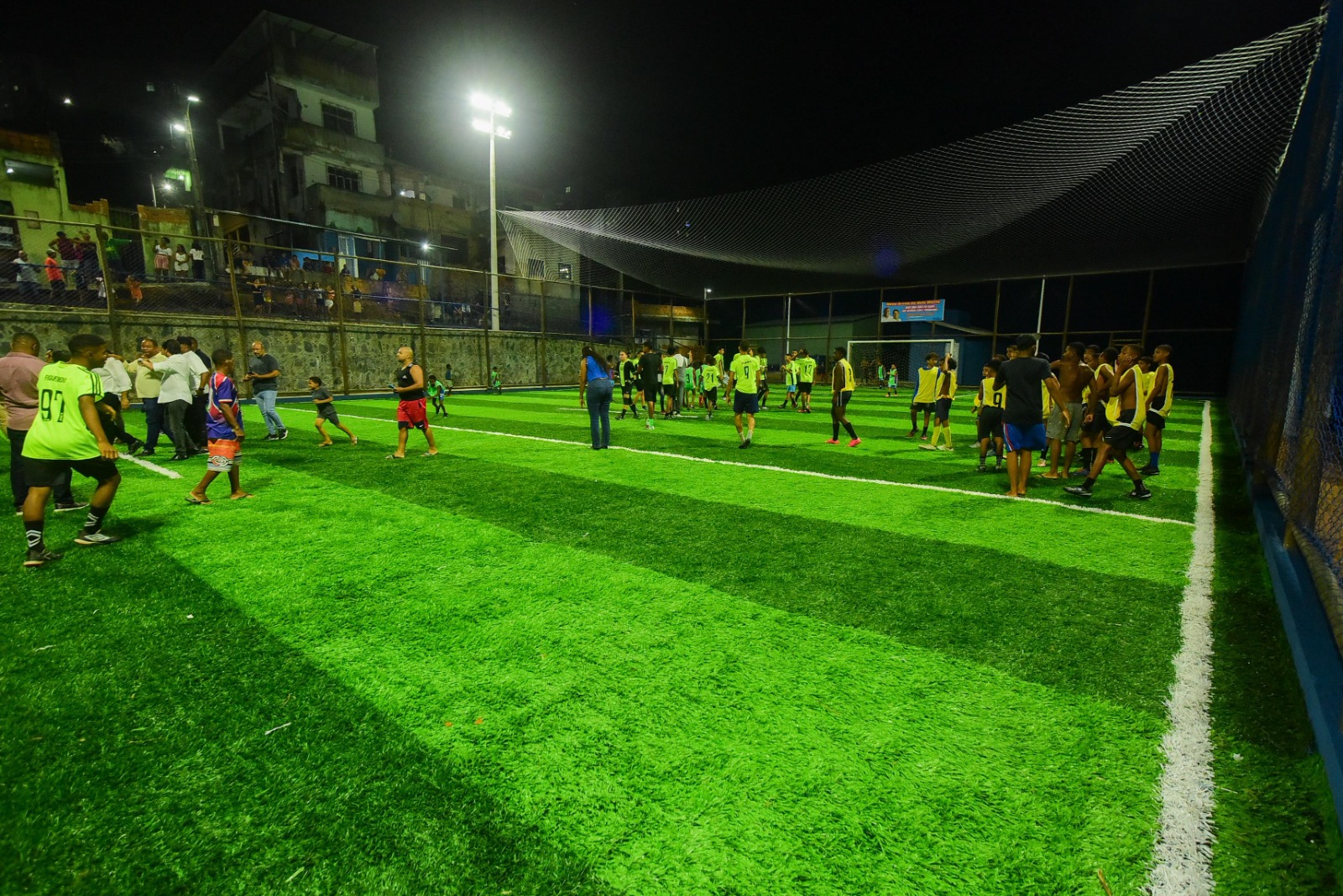 Os moradores do bairro de Plataforma ganharam, na noite desta terça-feira (13), dois espaços de convivência e lazer completamente requalificados: a Praça Gilvanete Jesus dos Santos, na Rua Laurindo Cerqueira, e o Campo Benvindo, na Rua dos Tecelões, que ganhou gramado sintético.