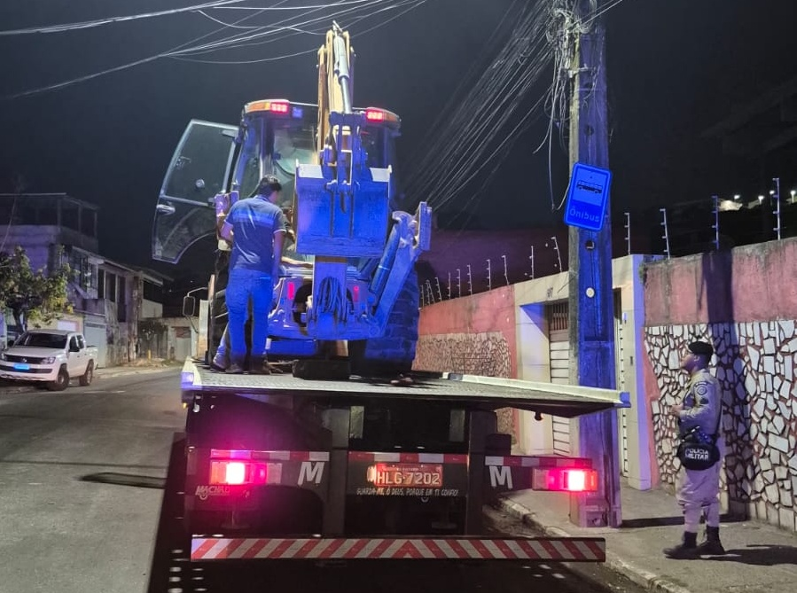 A máquina foi localizada em São Tomé de Paripe, no Subúrbio. Militares da 19ª Companhia Independente da Polícia Militar (CIPM/Paripe) foram informados sobre o furto e localizaram a retroescavadeira durante rondas, à noite.