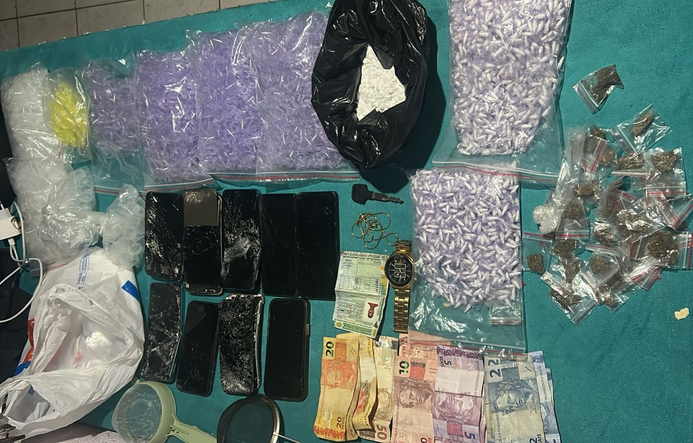 Com o grupo foram apreendidos cerca de 2 mil pinos de cocaína, 39 porções de maconha, 10 celulares, R$197 e materiais utilizados no fracionamento e comercialização de entorpecentes. Os sete suspeitos e o material apreendido foram conduzidos à Polícia Civil, para o registro da ocorrência.