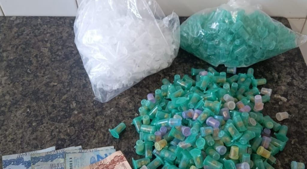 Ao ser abordado, foram encontrados na posse do suspeito 277 pinos de crack e 400 recipientes plásticos para acondicionar drogas, além de dinheiro em espécie.